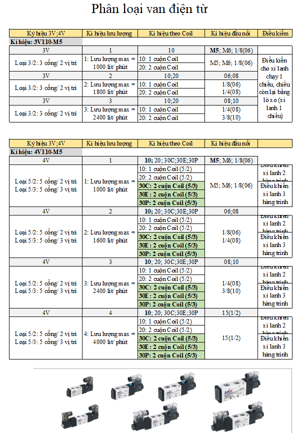 Dòng 4V được chia thành các series dựa trên kích thước cổng ren (Port Size), thể hiện qua các số đầu tiên trong mã sản phẩm: